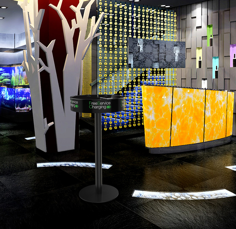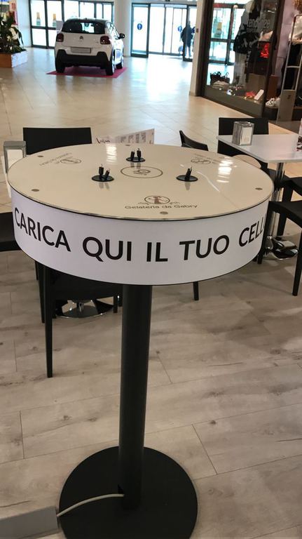 Con D.P. Desk ogni vostro ospite/cliente potrà caricare liberamente la batteria dei suoi device mentre consumano nel vostro locale.Questa stazioni di ricarica cellulari è l'unico tavolo che consente di caricare contemporaneamente sei (7) dispositivi, oltre ad avere una postazione con tecnologia di ricarica wireless (Qi wireless) al centro dove poter appoggiare il proprio smartphone e ricaricarlo senza fili.