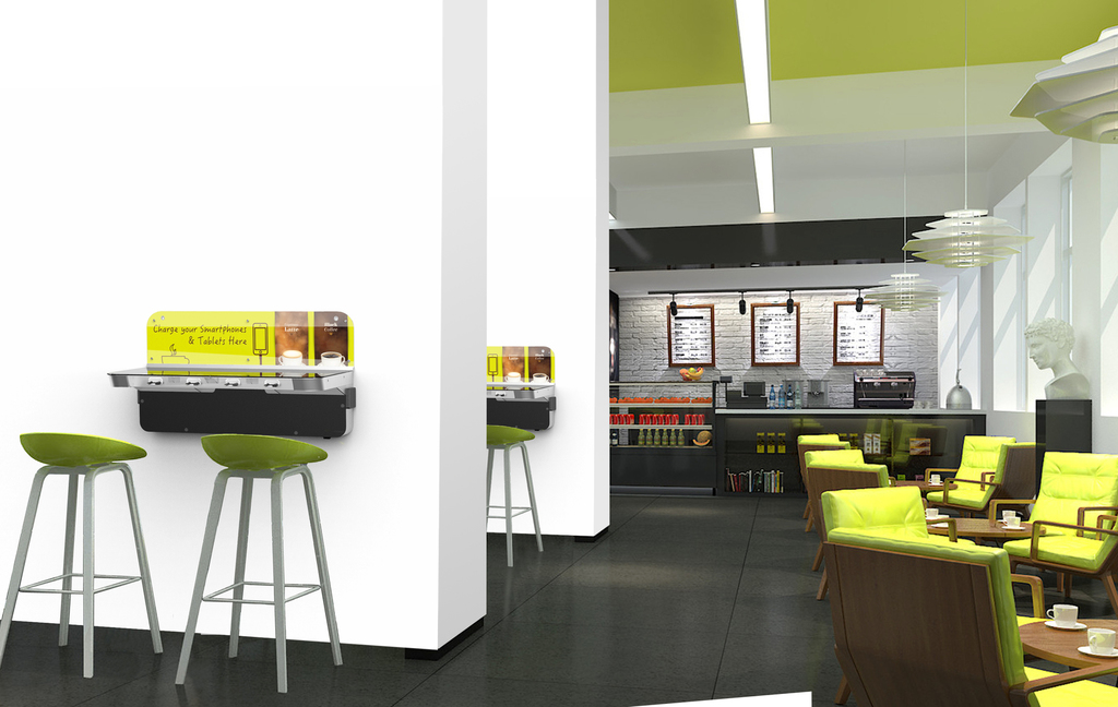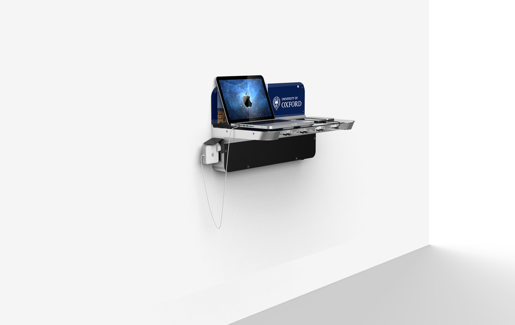E’ una postazione di lavoro che fornisce energia per la ricarica dei cellulari e notebook.