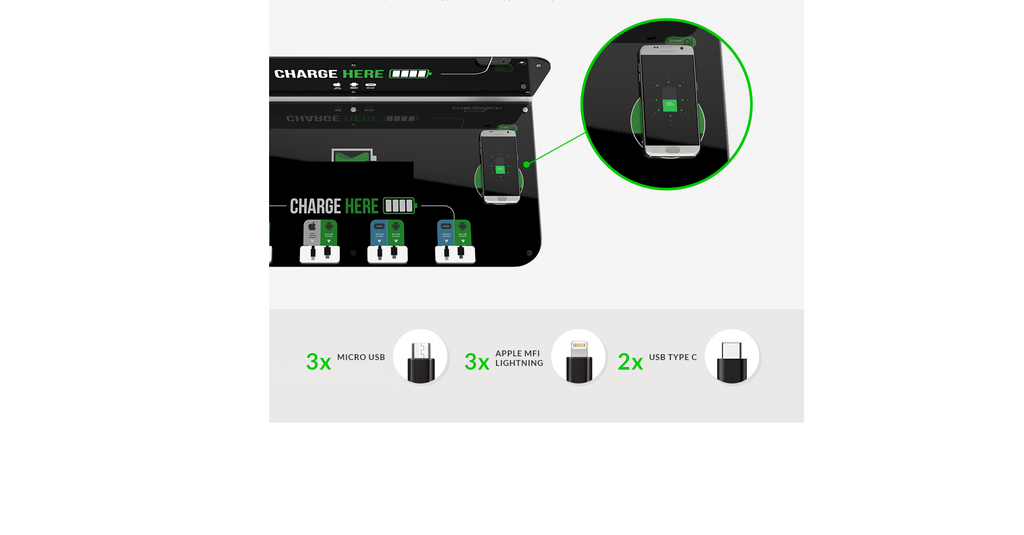Questa stazioni di ricarica cellulari ricarica sino a 12 dispositivi mobili contemporaneamente, e con la tecnologia wireless ricarica senza fili 2 Smartphone (abilitati a questa tecnologia).