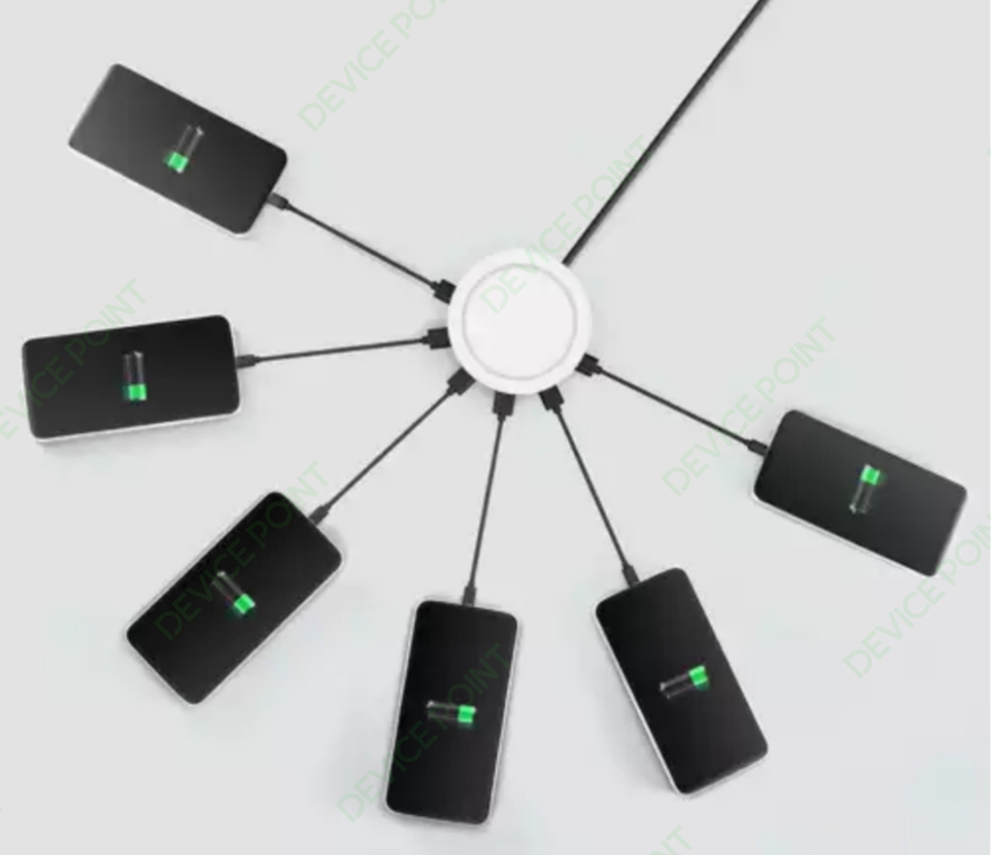 Con la D.P. ROUND ogni vostro ospite/cliente potrà ricaricare liberamente la batteria dei suoi device.La D.P. ROUND è una stazione di ricarica per cellulari che consente di ricaricare qualsiasi dispositivo presente nel mercato attuale. Contiene 6 uscite USB potendo ricaricare 6 dispositivi contemporaneamente.